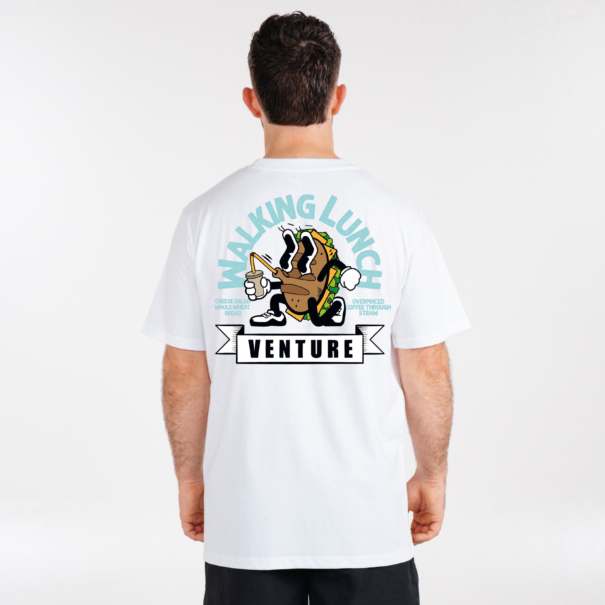 Ben je op zoek naar een fun en duurzaam T-shirt dat zowel in als buiten de gym indruk maakt? Dan is het Venture T-shirt Walking Lunch jouw musthave.