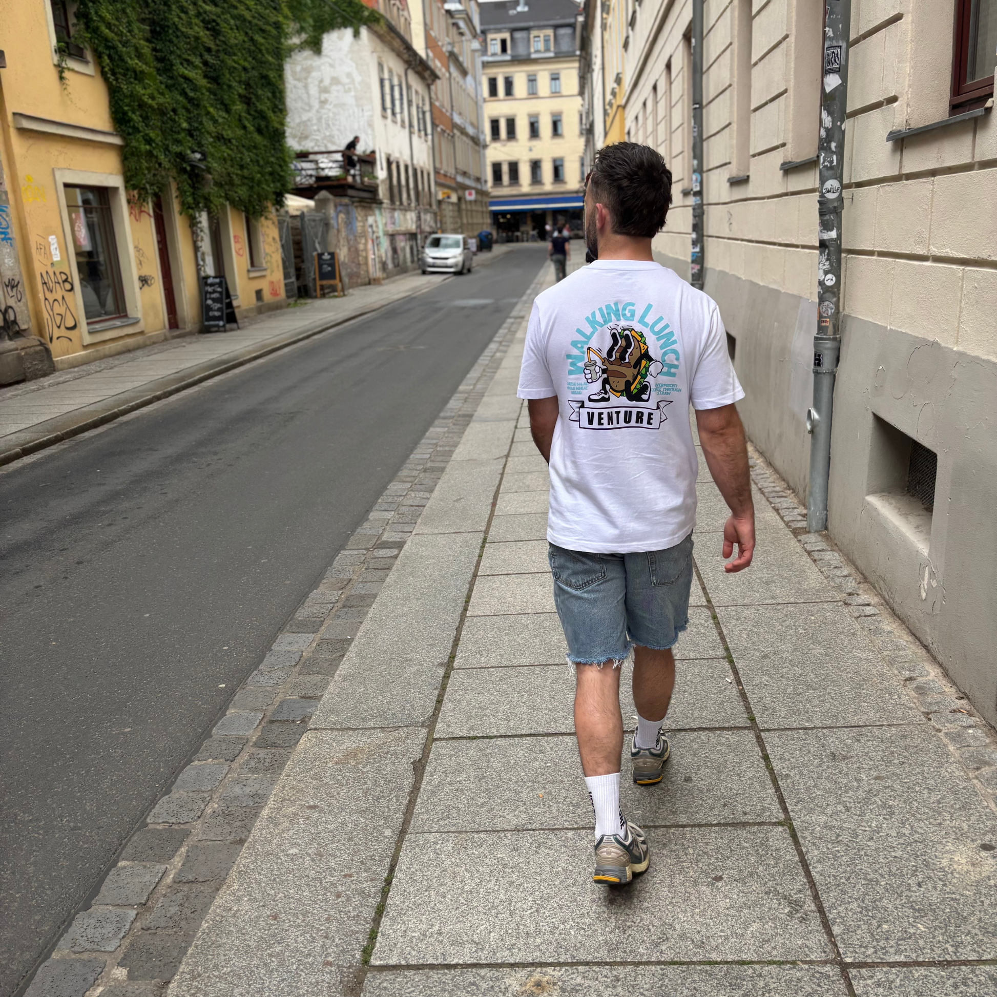 Het Venture T-shirt Walking Lunch is een premium unisex t-shirt met een relaxte pasvorm, perfect voor alle sportliefhebbers die stijl en comfort willen combineren. Gemaakt van 100% biologisch katoen, voelt zacht aan op de huid, geschikt voor zowel inspanning als ontspanning.